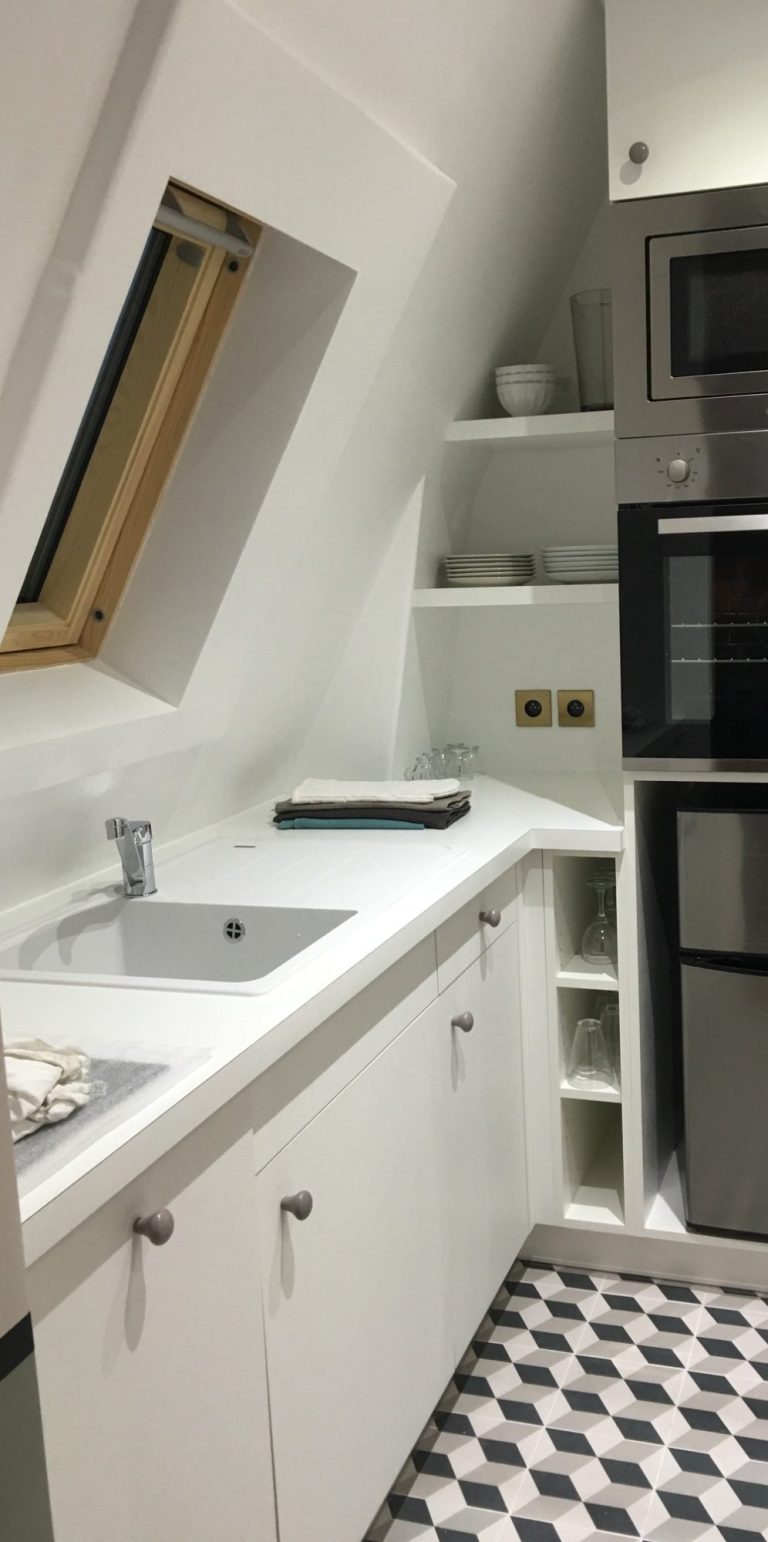 Rénovation complète d’un charmant deux-pièces niché sous les toits de Paris. La cliente, animée par l’exigence d’optimiser chaque volume et de maximiser la luminosité, souhaitait également créer un espace polyvalent pouvant servir à la fois de bureau et de chambre d’appoint. Avec une échéance serrée de seulement 5 mois pour achever les travaux, nous avons relevé ce défi avec passion et détermination, transformant cet espace en un lieu à la fois fonctionnel et lumineux, fidèle aux attentes les plus élevées.