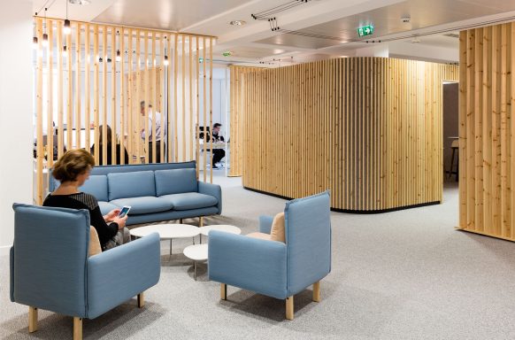 La structuration complète de deux niveaux de bureaux a été pensée avec une vision claire : favoriser la circulation de la lumière entre chaque espace et créer des zones propices à des réunions informelles, empreintes de convivialité. Le bois, élément essentiel et incontournable, s'impose avec élégance dans ce projet. Les cloisons vitrées sur toute hauteur et les claustras en bois ont constitué le socle fondamental de cette réalisation ambitieuse. De la conception jusqu’à l’aboutissement final, neuf mois d’engagement passionné ont été nécessaires pour donner vie à cet espace unique.