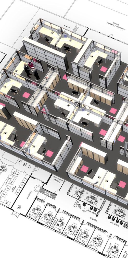 Comment surmonter le manque de synergie entre les équipes tout en optimisant les espaces de rangement ? Telle est la question posée par notre client. Nous avons relevé ce défi en transformant un espace initialement dédié à la confection, libéré et réaménagé pour créer des zones de travail individuelles, soigneusement délimitées par un ensemble de meubles de rangement. Ce projet a vu le jour grâce à une collaboration étroite avec nos fournisseurs de mobilier contemporain et fonctionnel. Après deux mois d’études approfondies et cinq mois de travaux intensifs, cet espace a été métamorphosé. Aujourd’hui, près de neuf ans plus tard, nous continuons avec fierté à assurer la maintenance et l’entretien de ce plateau de bureaux, symbole d’innovation et d’efficacité au service du travail d’équipe.
